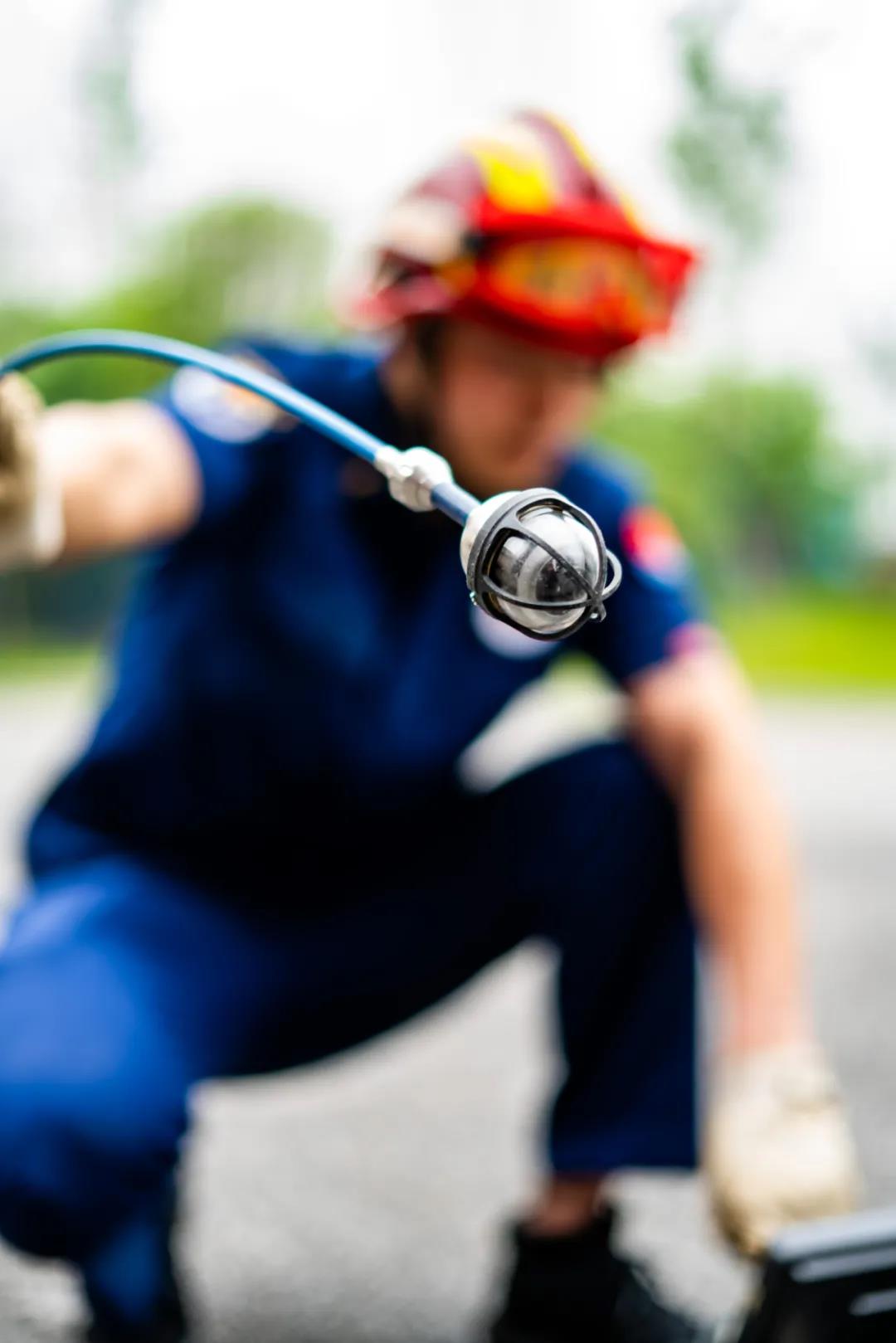 轟鳴的發(fā)動(dòng)機(jī)和迸射的火花就像消防員熾熱的心,時(shí)刻為各種險(xiǎn)情準(zhǔn)備著。